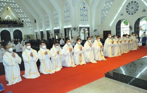 十月十六日清晨,胡志明市总主教区总主教阮能蒙席主持了总主教区圣若瑟大修道院19名执事的晋铎典礼。讲道中,总主教激励新铎们“把自己从一个普通人变成天主的牧人。司铎因着特殊的关系与人们联系在一起,他们是天主子民的领导,通过圣事向天主子民传达耶稣基督本人”。