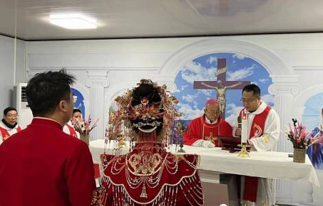 石家庄(信仰通讯社)—中国天主教会团体不仅活跃在牧灵福传领域,还时刻不忘社会责任感、共同抵制陈规陋习、关注老龄化和出生率等实际问题,善做好公民和好教友。据本社综合《信德网》报道,河北省保定教区安树新主教亲自为“零彩礼”教友主持婚配圣事。十二月二十八日,两位来自老教友家庭的青年信徒选择突破习俗、放弃高额彩礼,从安主教手中领受婚配圣事、接受主教祝福。他们树立了良好的基督徒婚姻表样,也获得了神长教友的肯定和赞扬。据悉,当地习俗彩礼一般的是十八万八,有的甚至可达二、三十万,这还不包括五金。两位选择“零彩礼”的新人表示,“双方都是老教友家庭,自幼接受来自父母的信仰教育,觉得不应该和世俗风气同化”。此为,在堂区接受了教会的信仰培育和婚前辅导后,“更明确地认同婚姻并非买卖,爱情也不是能用金钱衡量的,更重要的是活出婚姻的圣事性。有天主的恩宠比任何金钱都重要”!最后,他们表示对自己的婚姻和生活很有信心,“肯定有能力过好日子,靠自己的能力建设好新的家庭,不想给家庭增加负担,也是为了更好的孝敬父母”。保定教区神长教友都为这对新人的选择感到骄傲,盛赞他们“是信仰见证。圣经教导我们要做‘地上的盐,世界的光’(玛15:13-14),尽管我们无法改变某些习俗,但我们仍可以用自己的选择来证明婚姻与爱情的真谛,信仰的价值”。