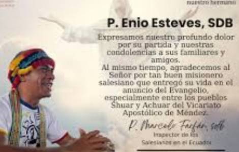 基多(信仰通讯社)—慈幼会厄瓜多尔“耶稣圣心省会”通过修会新闻简报沉痛宣布,一月二十六日当地时间下午,慈幼会士恩尼奥·埃斯特维斯神父不幸遭遇空难身亡。
