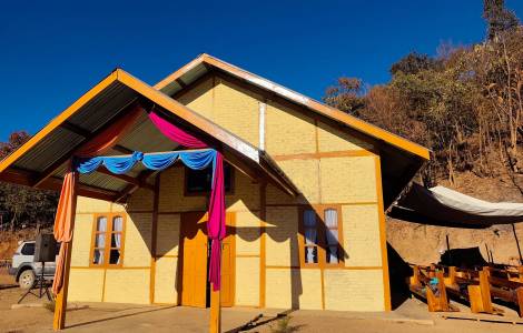 哈卡(信仰通讯社)—一座天主教新圣堂在缅甸西北部钦邦拔地而起,对当地天主教会团体而言意味着强有力的重生与希望。钦邦是缅甸唯一一个以基督徒为多数的邦。自二O二一年爆发政变以来,地区大部分领土已被反军政府抵抗力量控制和治理。据当地消息向本社透露,哈卡教区的信友内心充满对未来的信心与希望。许多教友参加了位于哈卡地区马图皮镇的圣若瑟堂新堂区祝圣、开堂的隆重降福礼。