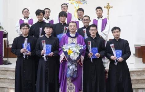 北京(信仰通讯社)—三月一日,北京教区甄雪斌助理主教在北京教区天主教神哲学院主持了新学年开学典礼隆重弥撒圣祭。其间,甄主教为神二班修士授予读经职。据修院公众号报道,讲道中,甄主教援引读经与福音,从坚固信仰、牢记圣召、怀揣圣言三方面勖勉众人。语重心长将泥沙中跋涉的圣召之旅与亚巴郎蒙召呼应对照,劝慰众人。那自大博尔山上彰显光荣的圣言,向修士耳边低吟,当于尘世羁绊中扎根信仰,不避污浊,却以基督之光照亮幽暗,坚励众人固守望徳,痛苦之后更有光耀。讲道后,甄主教为神二班修士授予读经职。修士们俯身领受,如麦穗低垂,主教加以劝言,愿新领受正式职务的神二班修士们用生命诠释圣言,成为活的书卷,光荣天主,建设教会。