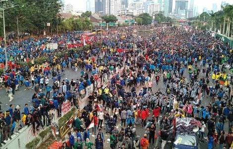 雅加达(信仰通讯社)—今天九月四日,印度尼西亚学生和工人运动、民间社团发起的抗议活动在首都雅加达议会大厦前举行。当地学生协会联盟表示,抗议活动旨在聚焦“腐败和法律政治化”。持续了一星期的印尼城市抗议活动,最初针对议员补贴,随后演变为反对警察暴力。整个群岛范围内共造成十人死亡、逾千人受伤、三千人被捕。现在,普拉博沃·苏比安托总统宣布军队和警察成功抵御了暴徒的暴力行为,且暴徒中潜伏着“叛徒和恐怖分子”。