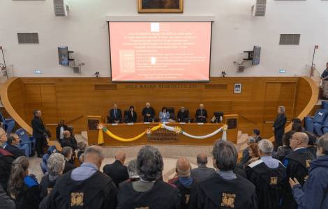 事实上,每所大学的使命超越了教室和学术课程的范畴,且致力于服务人民。特别是在那些人们期待希望的话语和爱德的迹象、真理的线索和自由的保障的地方。对于你们的大学而言,这一点尤为重要。作为宗座传信(乌尔巴诺)公学的学术延续,近四百年来,你们的身份认同中始终铭刻着普世教会的传教印记。