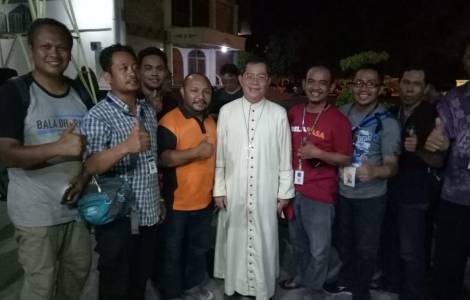 مانادو (وكالة فيدس) - تحدّث المونسنيور بنديكتوس اسطفانوس روللي انتو، أسقف مانادو وهو احد مرسلي القلب المقدس الى النازحين المقيمين مؤقتاً في كنيسة رعية كنيسة العذراء مريم والقلب المقدس في وسط مدينة بالو، المدينة التي تأثّرت بشدة جراء الزلزال الذي وقع يوم 28 ايلول ودمّر جزيرة سولاويسي في شرق الأرخبيل الإندونيسي وقال لهم "انا موجود هنا لتعزية النازحين وتشجيعهم."