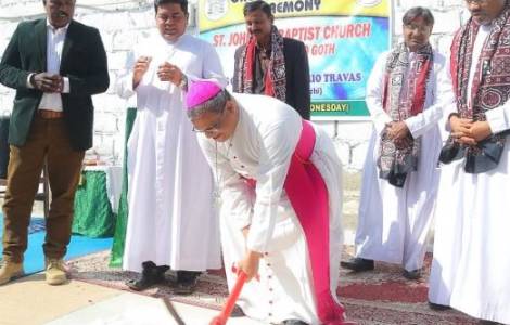 Erzbischof Benny Mario Travas von Karatschi leitete die Zeremonie der Grundsteinlegung für ein Gotteshaus, das derzeit gebaut wird und in den kommenden Monaten fertig gestellt und eingeweiht werden soll. Nach einem Gebet lobte und dankte der Erzbischof der versammelten Gemeinschaft der Gläubigen für den Baubeginn und betonte, wie wichtig es sei, "dieses Gotteshaus zu errichten, um durch Gebet und Eucharistie den Segen Gottes zu erflehen". Gleichzeitig betonte er, dass "die Kirche aus lebendigen Steinen gebaut werden muss, aus Menschen, die Jesus Christus in ihrem alltäglichen Leben bezeugen und verkünden". Beim feierlichen Baubeginn setzte Erzbischof Travas symbolisch eine Spitzhacke für die erste Ausgrabung für die Grundsteinlegung ein und enthüllte dann das Plakat mit dem Plan der neuen Kirche, auf dem sich alle Gläubigen verpflichten, am Bau mitzuwirken.