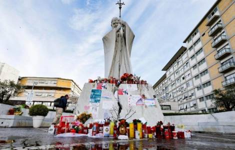 Am Morgen hatten sich rund 500 Kinder, auf dem Vorplatz der Gemeilli-Klinik versammelt, auf dem die Statue von Johannes Paul II. steht. Es handelte sich um eine vom Kinderhiolfswerk UNICEF und der Caritasstelle der Diözese Aversa unterstützte Delegation von Kindern vieler Nationalitäten, die dem Papst auf diese Weise ihre Zuneigung zeigten.