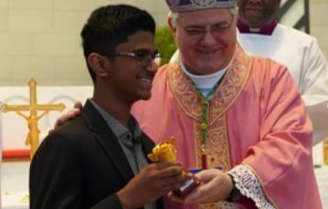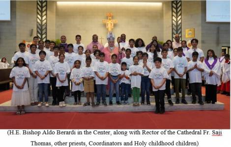 During the celebration of the mass held on Friday, March 28 in the Cathedral of Our Lady of Arabia (OLA), in Awali, Bishop Berardi welcomed the first 46 child volunteers of the Holy Childhood Society. "Praying, helping and sharing the Gospel is the mission of children" the bishop recalled in his homily recalling the three mottos of the Holy Childhood and inviting all those present to pray and share the Gospel every day.