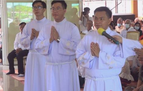 Los tres nuevos diáconos se suman a los presbíteros de la Iglesia local (actualmente 10 son camboyanos nativos, unos 70 son misioneros) que, gracias a la presencia de los misioneros, ha visto florecer de nuevo la fe y las comunidades católicas del territorio tras los oscuros tiempos del régimen de los jemeres rojos (1975-1979). La actual generación de cristianos se considera la primera comunidad católica, ya que la mayoría de sus padres y predecesores murieron a causa de las ejecuciones masivas, los trabajos forzados, los abusos físicos, la malnutrición y las enfermedades en los campos de trabajo dirigidos por los jemeres rojos.