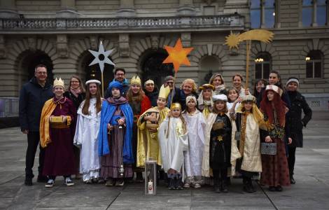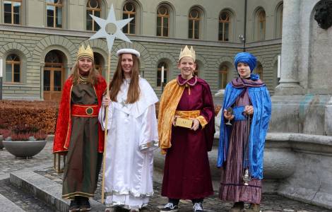 Llevar el mensaje del nacimiento de Jesús con cantos y bendiciones en alemán, francés e italiano es la misión de estos chicos y chicas de los cantones de Nidwalden, Friburgo y Tesino, que, vestidos de Reyes Magos, han entrado en el Palacio Federal, llamando la atención de los parlamentarios sobre su compromiso concreto como cristianos en la construcción de un mundo más justo y pacífico, a partir de una actitud más responsable y cuidadosa con la naturaleza.