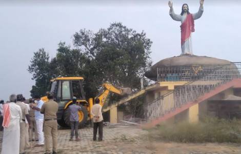 Kolar (Agence Fides) - Les autorités gouvernementales du district de Kolar, dans l'État indien du Karnataka, ont donné l'ordre de démolir une statue de Jésus-Christ, érigée il y a 18 ans dans le village de Gokunte. Comme l'a confirmé à Fides l'Église locale, l'ordre de démolition a été exécuté le 15 février, en présence de représentants des autorités civiles, de policiers et de la population locale. Selon l'ordre de démolition, la statue avait été construite sur un terrain de l'État, réservé comme pâturage pour les animaux. L'officier responsable a expliqué : "Nous avons démoli la statue sur la base de l'ordonnance de la Haute Cour, qui a confirmé qu'elle avait été construite sur des terres publiques. Toutefois, les dirigeants chrétiens de la région affirment que la statue a été démolie illégalement alors que l'affaire était toujours en instance devant le tribunal.