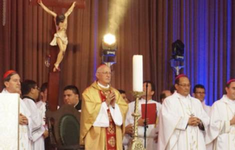 Dirigindo-se aos Cardeais, ao Núncio Apostólico, aos Bispos, aos sacerdotes, aos religiosos e às religiosas e aos inúmeros fiéis leigos presentes, o Card. Filoni levou a saudação e a bênção do Papa Francisco, e definiu como “motivo de profunda alegria eclesial” a sua participação na abertura do Congresso Missionário.