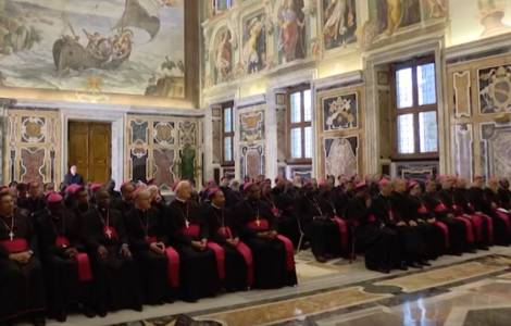 最后,亲爱的兄弟们,我请你们要小心导致平庸和懒惰的冷淡。你们小心这一点,小心逃避牺牲的安逸和牧灵急躁,这会导致不耐烦、有损福音的丰富财富。你们不要忘记,魔鬼是从口袋里进来的!我祝愿你们要为了福音保持神圣的不安,唯一给人平安的不安。我感谢你们听我讲话、降福你们,非常高兴你们是兄弟中最亲的。我请你们为我祈祷、不要忘记为我祈祷、让人们为我祈祷。谢谢。