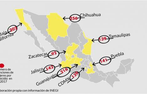 墨西哥是拉丁美洲女性被杀率最高的国家,在阿根廷和玻利维亚之前。联合国统计,每十名墨西哥妇女中至少六人遭遇过暴力;41.3%的女性是性暴力受害者;每天平均九名女性被杀。