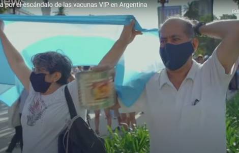 接受媒体采访时,主教团医疗牧灵委员会主席,拉普拉塔教区辅理主教措辞强烈地抨击了国内特权阶层“抢先接种疫苗”的做法“令人震惊”。“我们面临的是伦理道德的沦丧,但要保持冷静和镇定,因为我们是手足”。主教强调“不应将疫苗政治化”,“我们以为已经看到了各个领域的腐败,但事实却继续让我们目瞪口呆”。