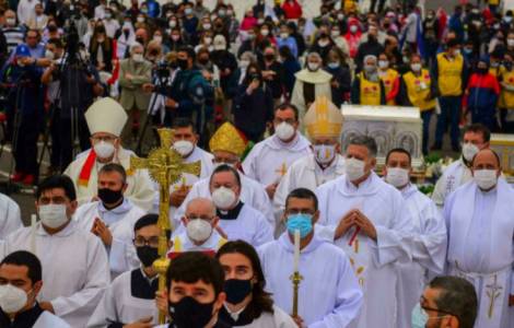 大家严格遵守防疫措施,在停车场参与了巴拉圭主教团主席阿达尔贝尔托·马丁内兹·弗洛雷斯总主教主持的隆重弥撒圣祭,亚松森总主教瓦兰祖埃拉蒙席等多位教会神长共祭。还有手捧鲜花和巴拉圭国旗的加尔默罗赤足会修女以及热心教友们。然后,真福的圣髑在国宾仪仗队护送下浩浩荡荡回到加尔默罗赤足会会院、在国歌声中安放至会院小堂。这座会院,也是一九五九年年仅三十四岁的“奇基通加”修女安息主怀的地方。
