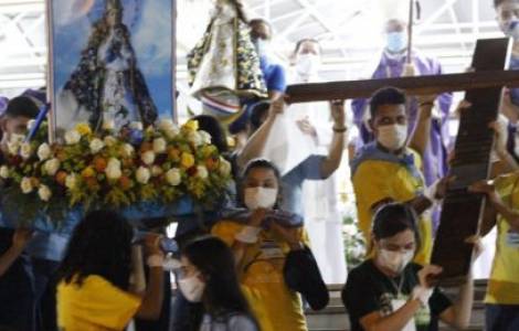 卡库佩(信仰通讯社)—十二月四日星期六,来自巴拉圭全国各地的青年聚集在卡库佩参加全国青年牧灵委员会组织的一年一度的朝圣活动,一起祈祷、求巴拉圭主保奇迹圣母的降福。委员会执行秘书宣读了全体青年的梦想宣言。最后,康塞西翁教区的青年将朝圣十字架交给了卡尼纽宗座代牧区的青年。