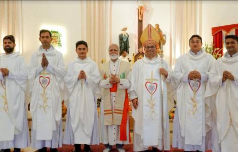 卡拉奇(信仰通讯社)—六月二十四日耶稣圣心瞻礼之际,巴基斯坦卡拉奇总主教区举行了隆重的晋铎仪式,五名新司铎加入到了总主教区的神职团队中。卡拉奇总主教区本尼·马里奥·特拉瓦斯蒙席叮嘱新铎们追随耶稣的道路、以耶稣为榜样。“永远慈悲、随时准备好宽恕、宣讲天主的爱与慈悲”。总主教为新铎以及在场信众详细讲解了耶稣圣心的道理。并感谢天主赐予卡拉奇总主教区丰富的圣召,让他们早日成为葡园的园丁。